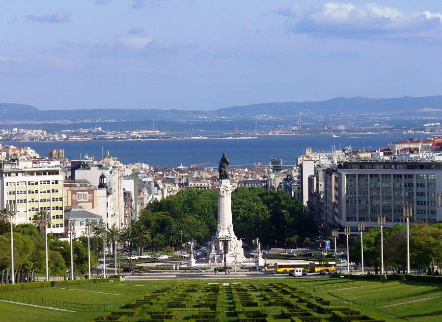 The monument honours Sebastião José de Carvalho e Melo, better known as the Marquês de Pombal an important Portuguese statesman. The monument features a tall column with a statue of the Marquês de Pombal at the top, looking over the city. At the base, there are statues of lions, symbolizing his strength, and various figures representing his achievements and contributions. You can see inscriptions detailing the Marquês de Pombal's accomplishments, including his efforts in rebuilding Lisbon.